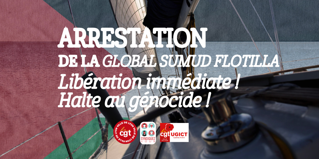 La CGT Ville de Lyon affirme sa solidarité envers tous les camarades détenus par Israël et appelle à la mobilisation par le rassemblement de lundi 6 octobre. Nous réclamons également…