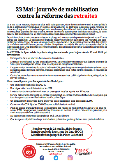 23 Mai : journée de mobilisation contre la réforme des retraites